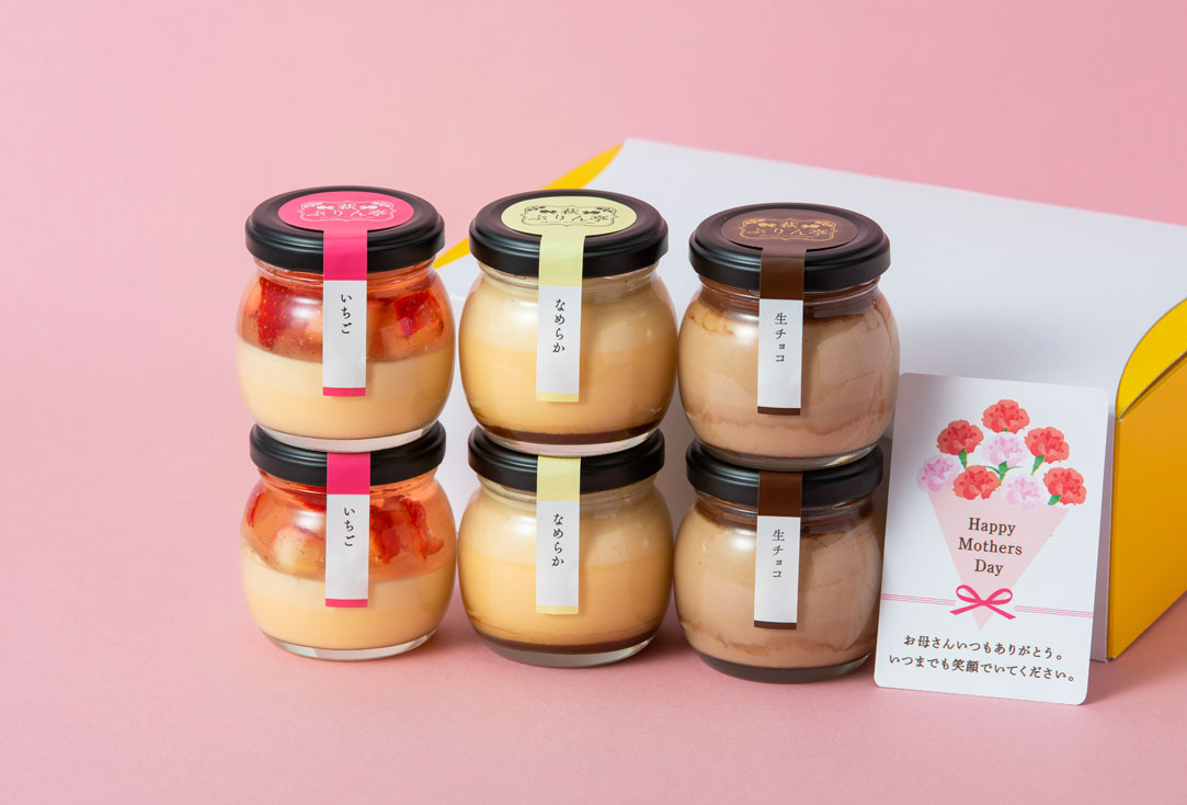 【こちらの商品は4月中旬頃より販売開始予定です】 5月10日は母の日。 普段なかなか伝えられない感謝の気持ちを 萩ぷりん亭のぷりんに乗せて届けませんか? いちごぷりん、なめらかぷりん、生チョコぷりんがそれぞれ2個ずつ入ったセットです。