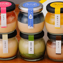 [なめらか2個、抹茶と黒豆2個、渚ぷりん2個、萩夏みかん2個、生チョコ2個、いちご2個] | |